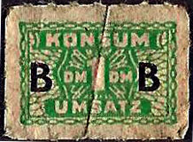 | mit Buchstaben-Zahlen-Kombinationen (vgl. Info des Zenralkonsums Berlin), größerer Buchstaben/Zahlen-Druck | |||||||||||||||