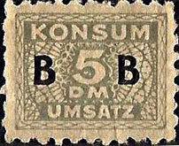 | Wertangabe in "M" mit Einlochtrennung | Stempelaufdruck A auf Serie von 1968 | |||||||||