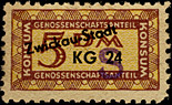 ![]() Ausgabe durch die KONSUM Genossenschaft Leipzig Anteile a ,50 (Pfennige) = Karte = 5,- DM |
