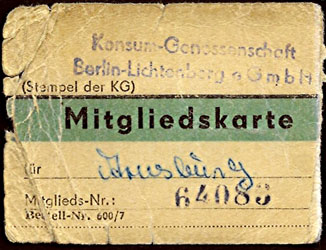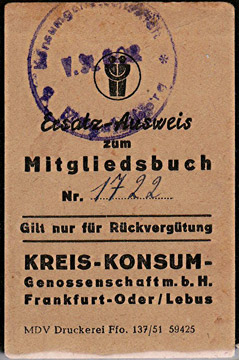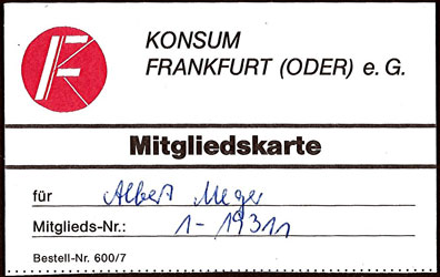 Mitgliedskarte Frankfurt/O. Lebus |