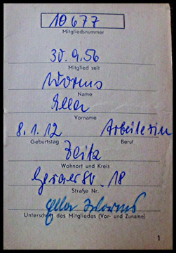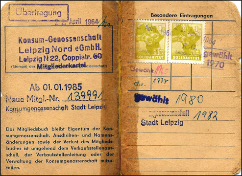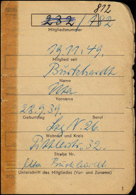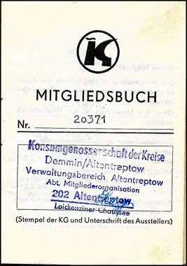 Innenseite des Mitgliedsbuches |