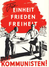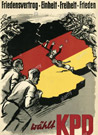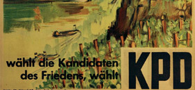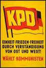 Die Kommunistische Partei Deutschlands (Kurzbezeichnung; KPD) wurde am 30. Dezember 1918 gegründet. Ihr Ziel war die Errichtung des Kommunismus in Die Partei ging aus mehreren linksrevolutionären Gruppierungen hervor, die sich nach dem Ersten Weltkrieg im Verlauf der Novemberrevolution von 1918 vereinten. Ihr Verhältnis zum Parlamentarismus und zur Demokratie war gespalten, da sie die„bürgerliche Demokratie“ durch eine sozialistische Räte-Republik ersetzen wollte, aber dennoch an Wahlen teilnahm. Seit 1919 war sie Mitglied, der von Lenin und später von Stalin inhaltlich dominierten Kommunistischen Internationale (Komintern), die auch als Dritte Internationale bezeichnet wird. | ![]() |