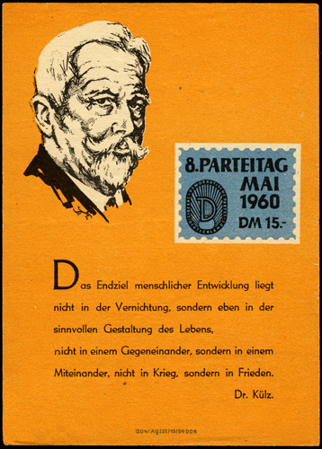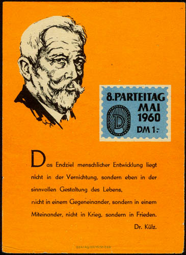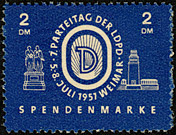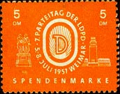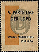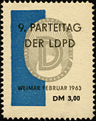 Marken vom Landesverband Berlin mit Handstempelaufdruck "5. Parteitag" 1953 in Dresden