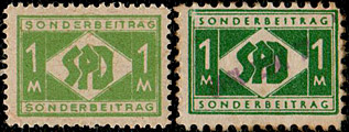 Monatsbeitragsmarken ohne Wertangabe / teilweise mit handschriftlicher Wertangabe / Belegt durch Ausweise / Mitgliedskarten - unterer Rand Vermerk: MONATSBEITRAG | |||||||
