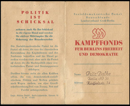 Spendenkarte - Kampffonds für Berlins Freiheit und Demokratie (Mitglied Berlin Süd-Ost) | |||||||||