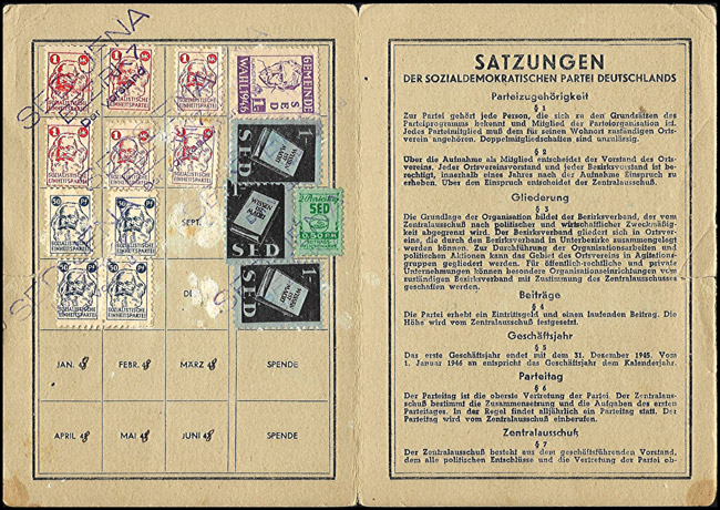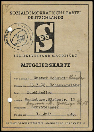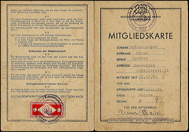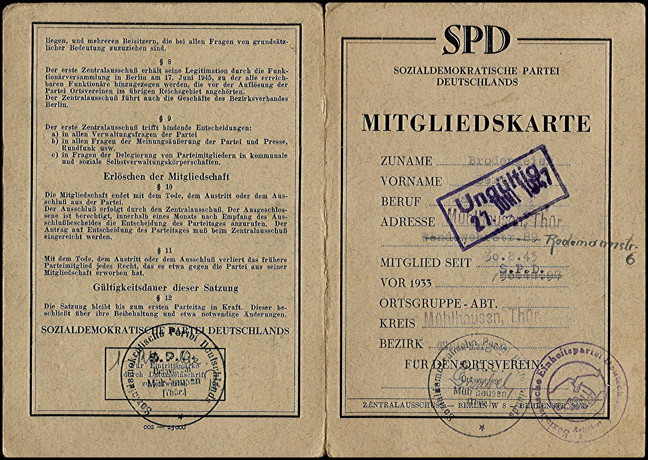 Mitgliedskarte für den Ortsverein - Mühlhausen Thüringen |