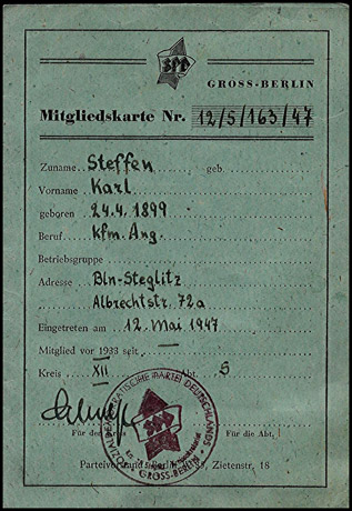 Mitgliedskarte - Groß-Berlin | Mitgliedskarte Innenseite |