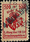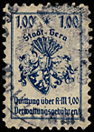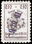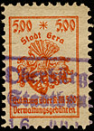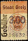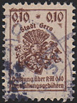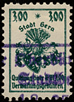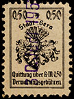 | Stadt Gera / die vollen Reichsmark-Wertstufen jeweils mit "*,-" geschrieben; ohne Grafik unter der Wertstufe | ||||||||||||
