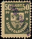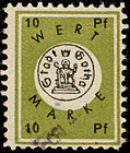 | Wertmarke Stadt Gotha, bisher für 1947 bis 1949 auf Dokument nachgewiesen, Buchstaben der Währungsangabe untereinander | |||||||