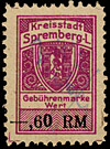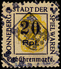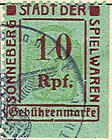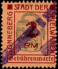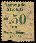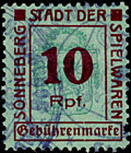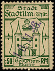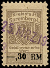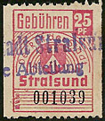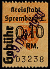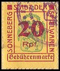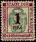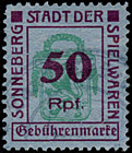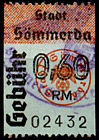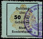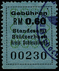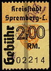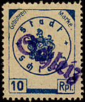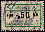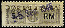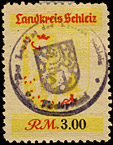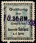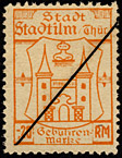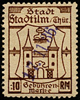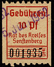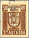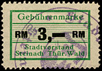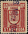 | Gebührenmarke vom "Landrat des Kreises Stadtroda" | RM 10,- mit Überdruck | ||||