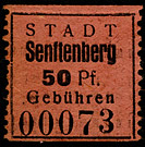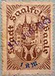 | Marken der "Stadt Saalfeld/Saale"; bis 1943 belegt, Verwendung nach Mai 1945 wird vermutet Wert in rot |
