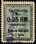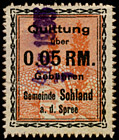 | Die beiden Begriffe "Gemeinde" und "Sohland" nebeneinander; Marken ab 1933 bekannt, Verwendung ab der "1.- RM"- Marke bis 1953 auf Dokumenten belegt | |||||||||
