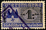 | Gebührenmarken sächsischer Gemeinden aus dem Deutschen Reich. Nachweislich wurden diese Marken mit Hakenkreuz bis 1947 verwendet. (Verwendung bisher bis 1947 in Markranstädt nachgewiesen) | ||||||||