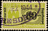 | Serie mit gelben Wappen, "Gebührenmarke" ohne Rahmen | Schrifttype der Ziffern geändert - Rpf kursiv | |||||||