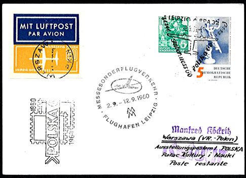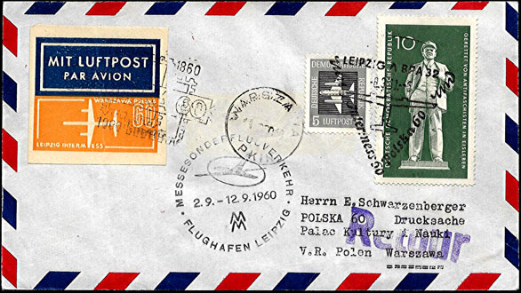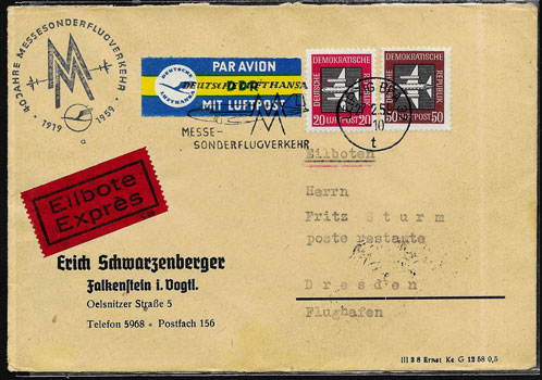 Luftpost-Brief (Sonderpoststempel Leipziger Messe) mit Luftpost-Vignette |