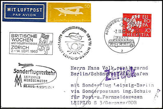 Brief mit Rückflug-Begleitmarke (SCHWEIZ-DDR) |