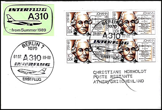 | Originalbeleg der INTERFLUG mit Vignette und Sonderstempel |