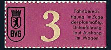 | LM / 3 - mit Berliner Wappen + Linien-Nummer + Ziffer links neben dem Text (Papier rot) | |||||||