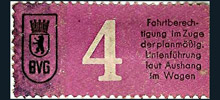 | LM / 2 - mit Berliner Wappen + Linien-Nummer + Ziffer links neben dem Text (Papier violett) | |||||||
