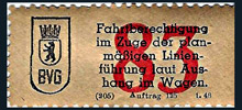 Die LINIEN-Marken (Fahrtberechtigung) der Berliner Verkehrsgesellschaft -BVG- |