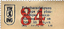 | Die Fahrtberechtigungs-Marken kennzeichnen die vom Karteninhaber nutzbare Linie im Streckennetz der Verkehrsgesellschaft | |||||