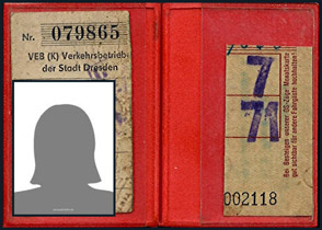 | Netzkarte Dresdner Verkehrsgesellschaft | Ausweis des VEB (K) Verkehrsbetriebe der Stadt Dresden | Ausweis des VEB (K) Verkehrsbetriebe der Stadt Dresden | ||||