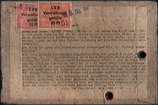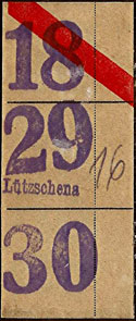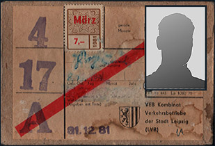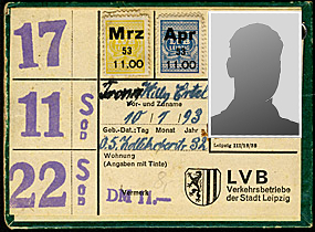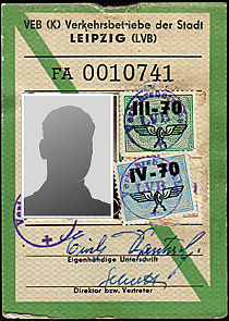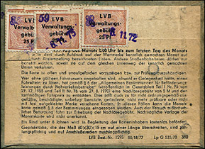 | Verwendung von Quittungsmarken für die Entrichtung der Strafgebühr - für Leipziger Verkehrsbetriebe -LVB- belegt. | ||||||||||||