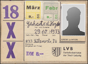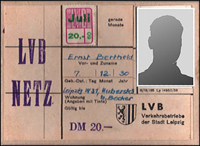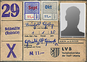 | Monatskarte - Li 29 = Straßenbahn (zu dieser Zeit längste Linie), die Angabe zur Enstelle verweist zugleich auf eine zuschlagspflichtige Strecke | Monatskarte Straßenbahn - Leipzig - Linie 6 | ||||