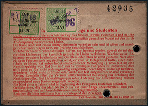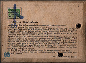 | Die Fahrtberechtigungs-Marken kennzeichnen die vom Karteninhaber nutzbare Linie im Streckennetz der Verkehrsgesellschaft | |||||||||||||