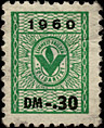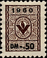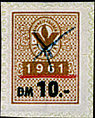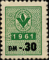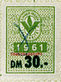 | Bisher einziger Beleg für die 30.-DM-Marke: Ministerpräsident Otto Grotewohl hat 1961 500.- DM an die Volkssolidarität gespendet. Auf dem Beleg kleben 16x 30 DM- und 2x 10 DM-Marken. | |||||||||||