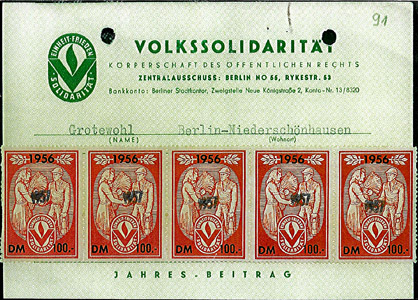 | aus diesen Spendenbelegen ausgeschnittene Markenbilder, dadurch in Mitgliedsausweise einklebbar gemacht |