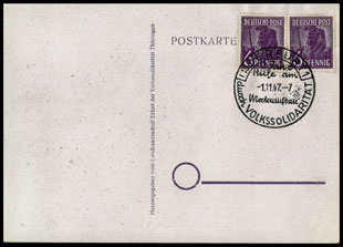 | helfen - Kinderspeisung durch Volkssolidarität | Poststempel ERFURT: 1.11.1947 | |||||