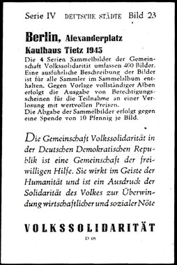SAMMELALBUM: Ausgegeben wurden Vier SERIEN Die Bildgröße beträgt ca 6 x 9 cm Neben der Bildbeschreibung erfolgte auch immer eine Aussage zu den Aufgaben der Volkssolidarität sowie der Hinweis, dass die Abgabe der Sammelbilder gegen eine "Spende" von 10 Pfennig je Bild erfolgt.
