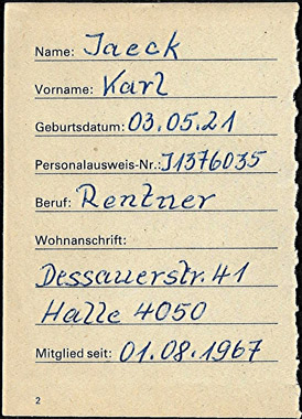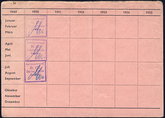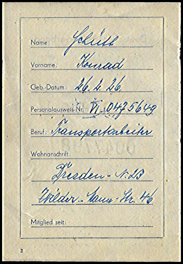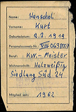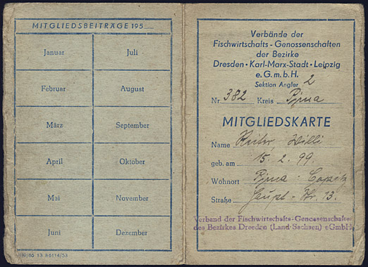 | Mitgliedskarte Verbände der Fischwirtschafts-Genossenschaften der Bezirke Dresden - Karl-Marx-Stadt - Leipzig e.G.m.b.H. | |||||||||||||||||||||