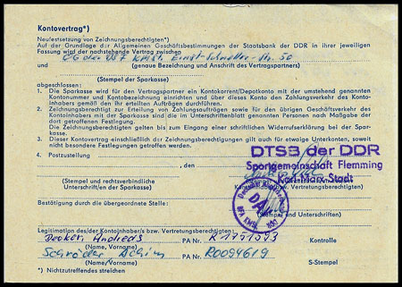 Kontovertrag SG Flemming Karl-Marx-Stadt (DAV) - für Beitragszahlungen | ||||