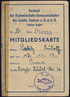 | Mitgliedskarte VFG (Verband der Fischwirtschafts-Genossenschaften) Land Sachsen | |||||||||||||||||||||