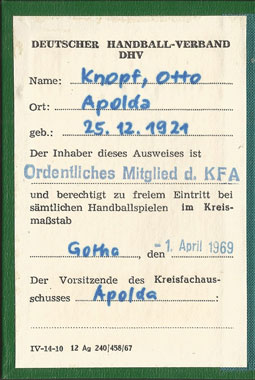 Spieler-Pass Vorderseite |