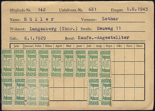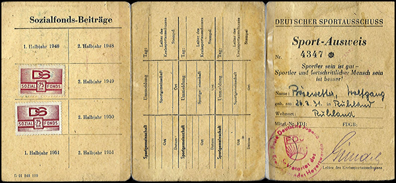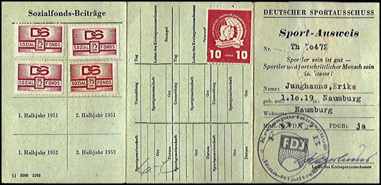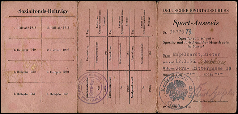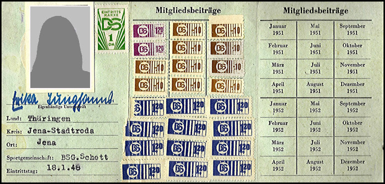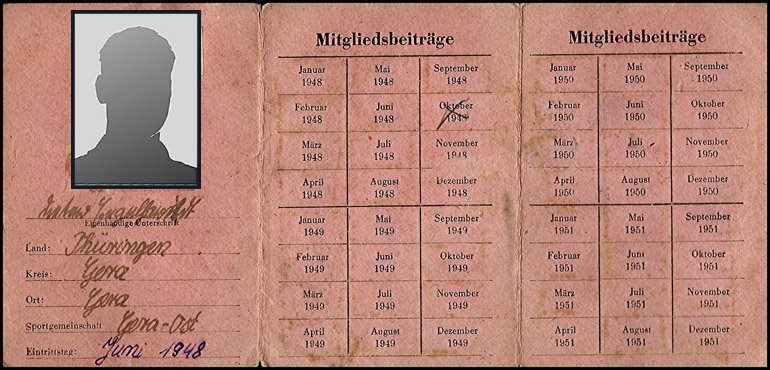 Mitgliedskarte "Antifaschistischer Sport" aus Thüringen |