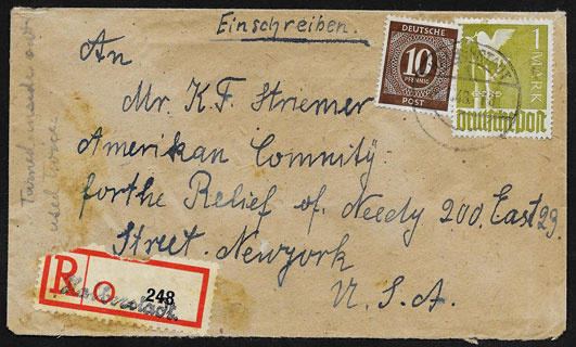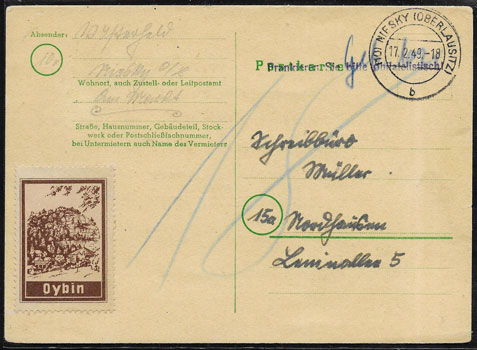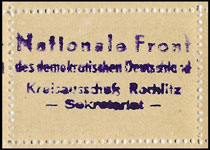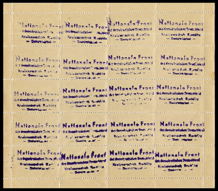 | Rückseite der Spendenbögen - Ausgabe durch Kreisausschüsse der Nationalen Front | Beispielmarke - rückseitig |