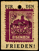 | mit Volkskongress-Marken beklebte Pappstückchen, rückseitig der Betrag der Spende | ||||||||