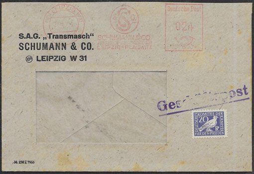 Rückseite mit Spendenmarke 20 Pf | Vorderseite mit Spendenmarke 50 Pf |