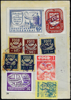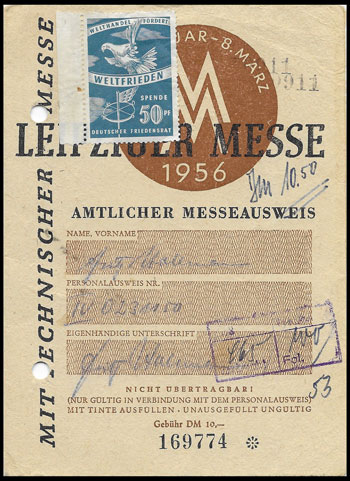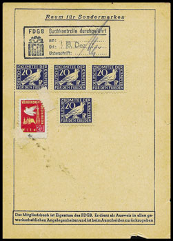 | Spende in einem DSF - Ausweis | Spendenmarken in einem FDGB Ausweis | ||||
