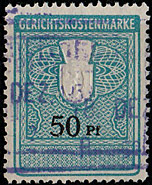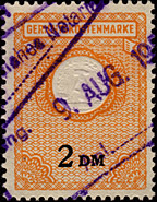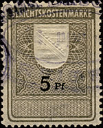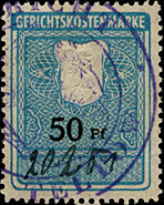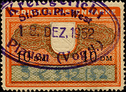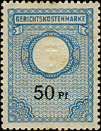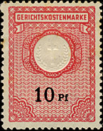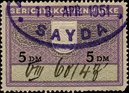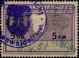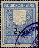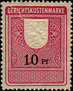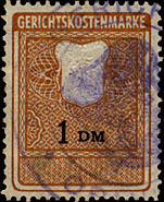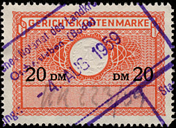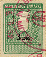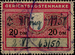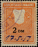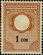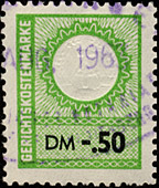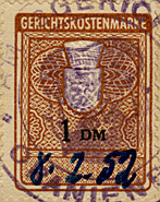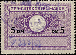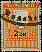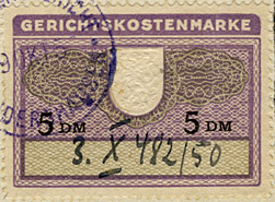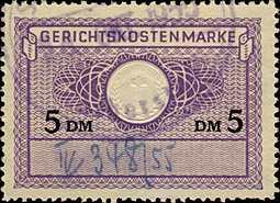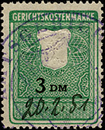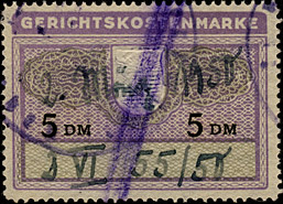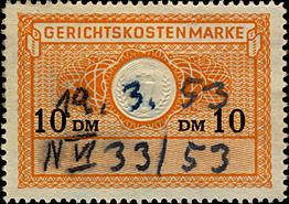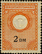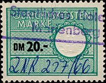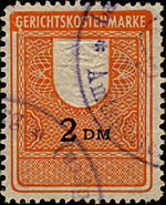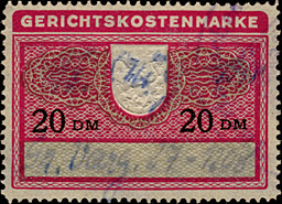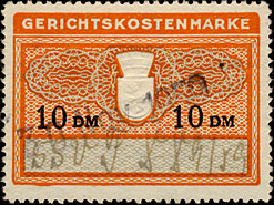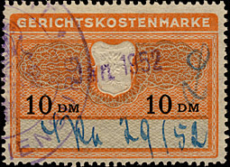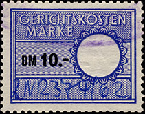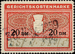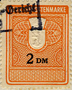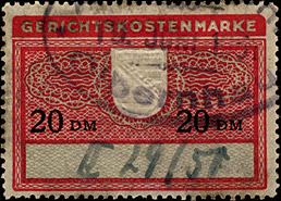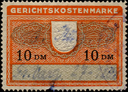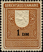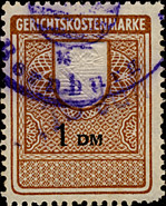 | Gerichtskostenmarken mit geprägten Stadtwappen, Währung "DM" | |||||||||||||