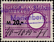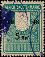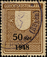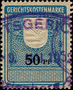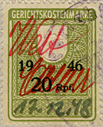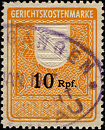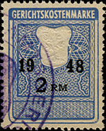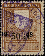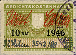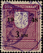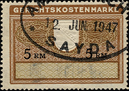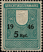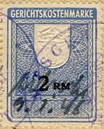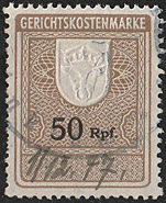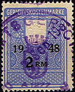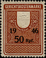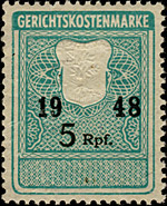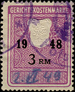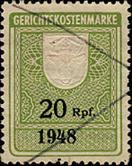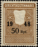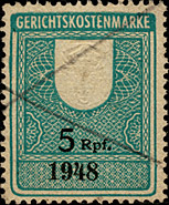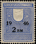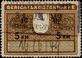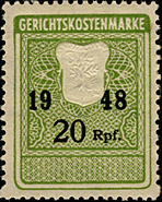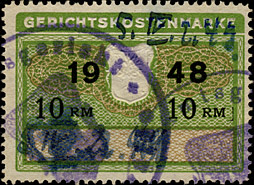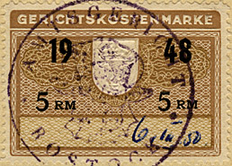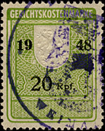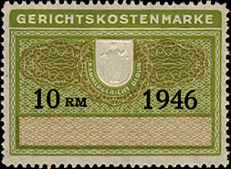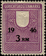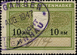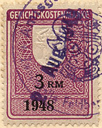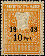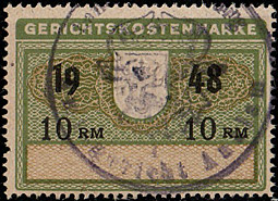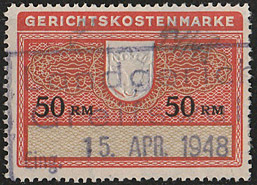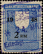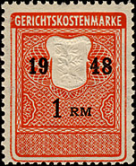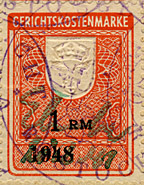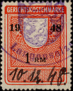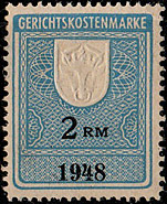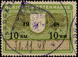 | Gerichtskostenmarken mit geprägten Landeswappen, Währung "RM" und Zusatz "1948" | |||||||||||||