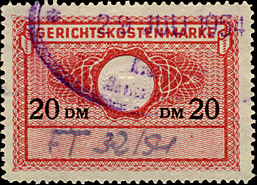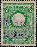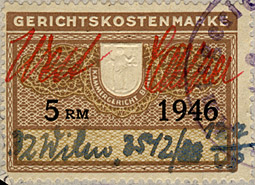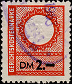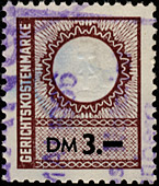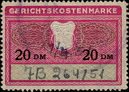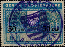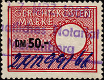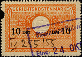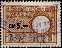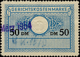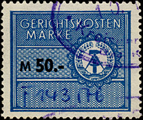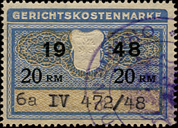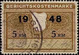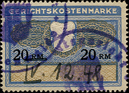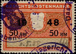 | Gerichtskostenmarken mit geprägter Justitia, Währung "RM"; 1948 im Markenbild. | |||||||||||||