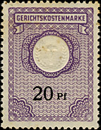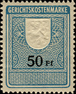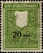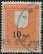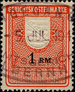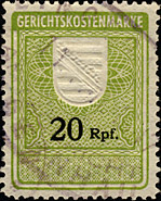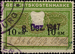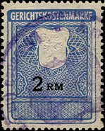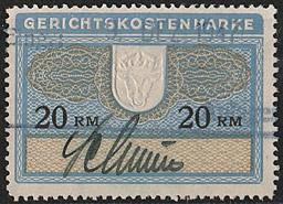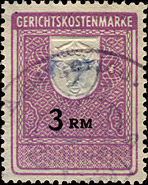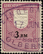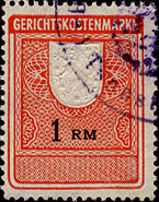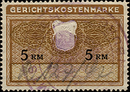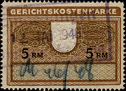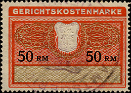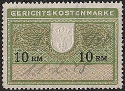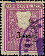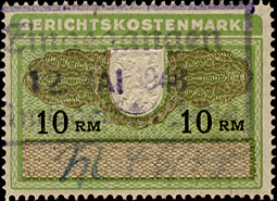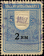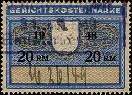 | Gerichtskostenmarken mit geprägten Landeswappen, Währung "RM" | |||||||||||||