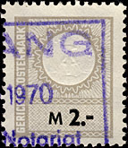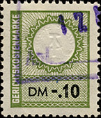 | Gerichtskostenmarken mit geprägten Staatssymbol -neu- (Hammer-Zirkel-Ährenkranz), Währung "DM" (moderner gestaltetes "DM") | ||||||||||