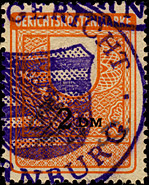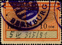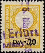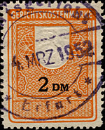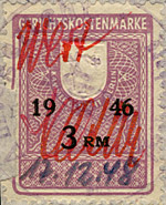 | ebenfalls 1948 erschien eine Serie in der Währung "RM" mit aufgedruckten roten Wellenband, wahrscheinlich ebenfalls zur Kenntlichmachung der neuen Währung. | |||||||||||||