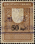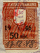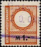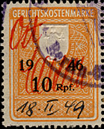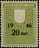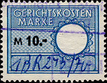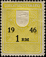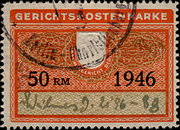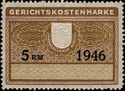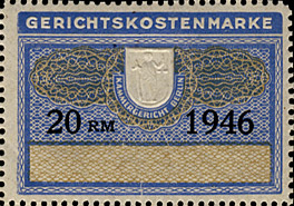 | Gerichtskostenmarken mit geprägter Justitia, Währung "RM"; 1946 im Markenbild. | |||||||||||||