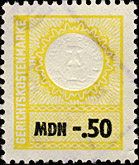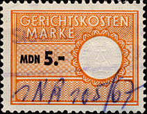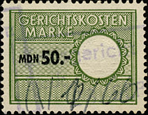 | Gerichtskostenmarken mit geprägten Staatssymbol -neu- (Hammer-Zirkel-Ährenkranz), Währung "MDN" | |||||||||